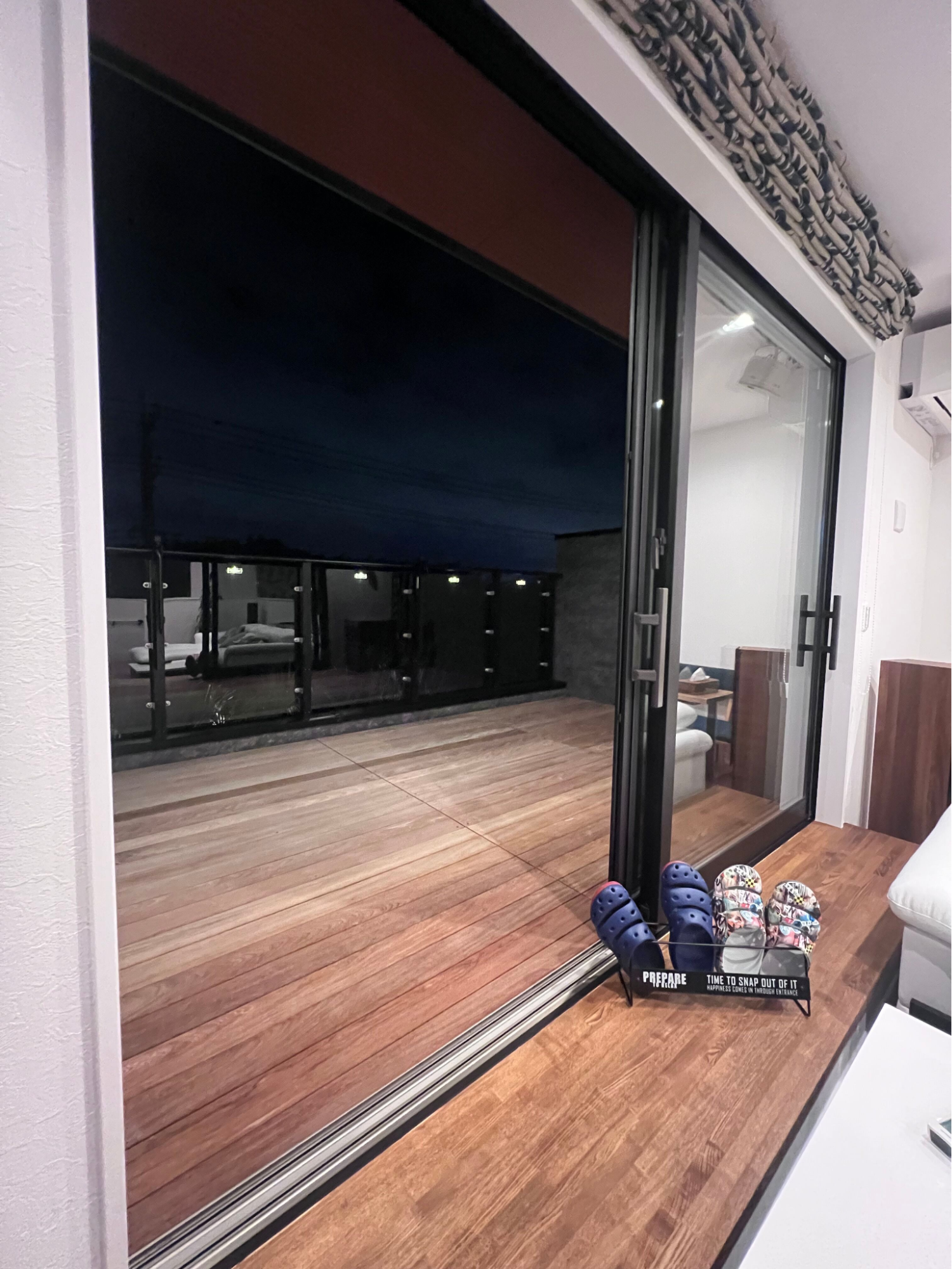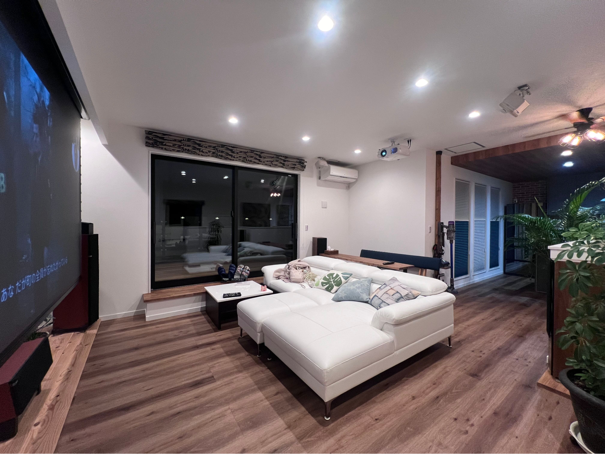 2階リビングから続くウッド調の庭は、昼間は開放的に、夜は照明に照らされて大人のリラックス空間に。外の視線を気にせず過ごせる設計で、家族や友人と過ごす時間がより特別なものになります。落ち着いた木の質感が映えるプライベートなテラスは、まるでリゾートにいるような心地よさを演出します。