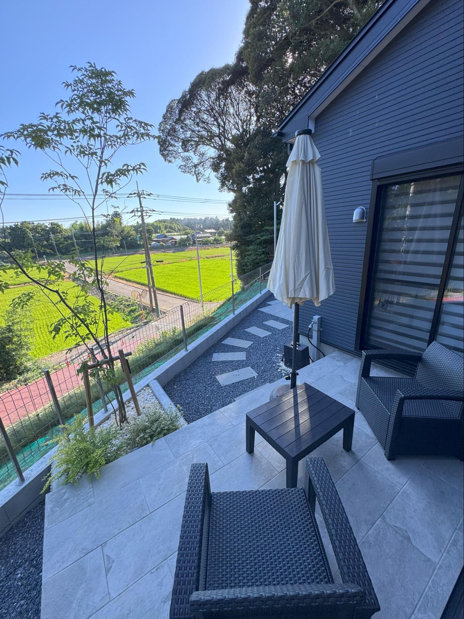 シンプルなタイル調の庭は、お手入れしやすく日常で大活躍。家具を置いて食事を楽しんだり、子どもやペットが安心して遊ぶ場としても人気です。周りの目を気にせず、プライベート空間を楽しめるスペースになりました。