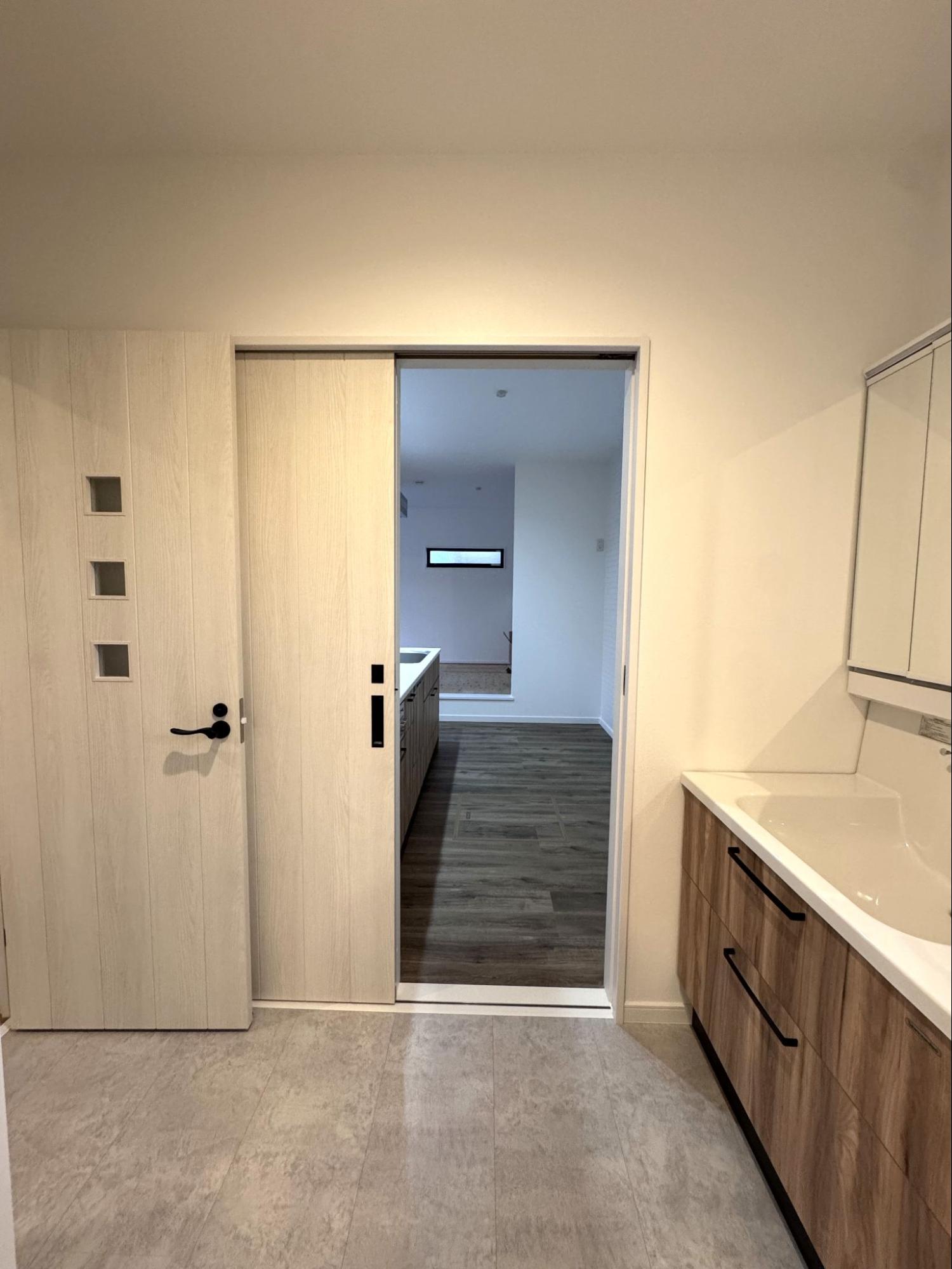 玄関から直接アクセスできる洗面所は、帰宅後すぐに手洗いができる便利な動線になっています。