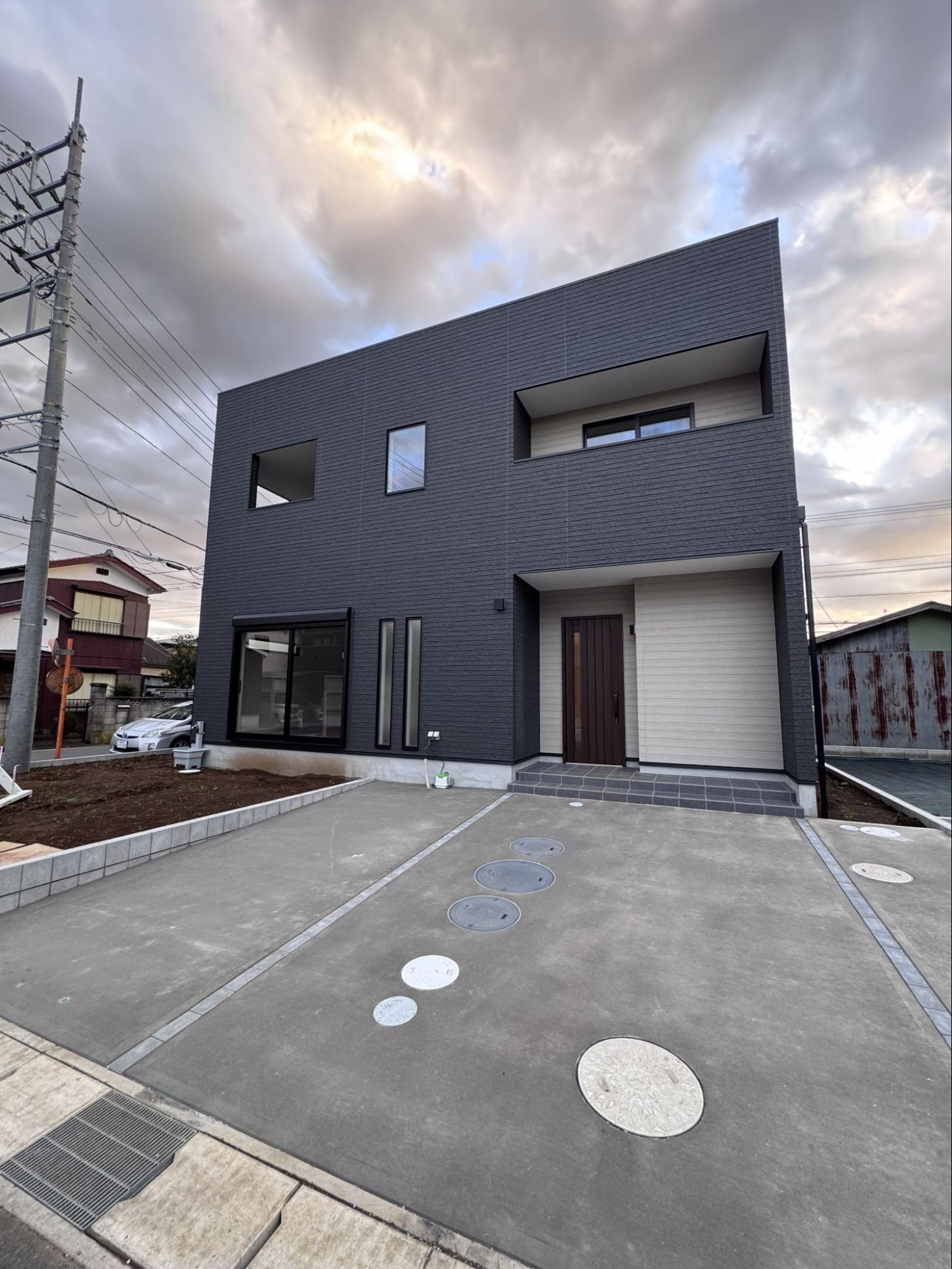 重厚感のあるグレーの外壁が印象的な外観。目の前には広々とした駐車スペースがございます。